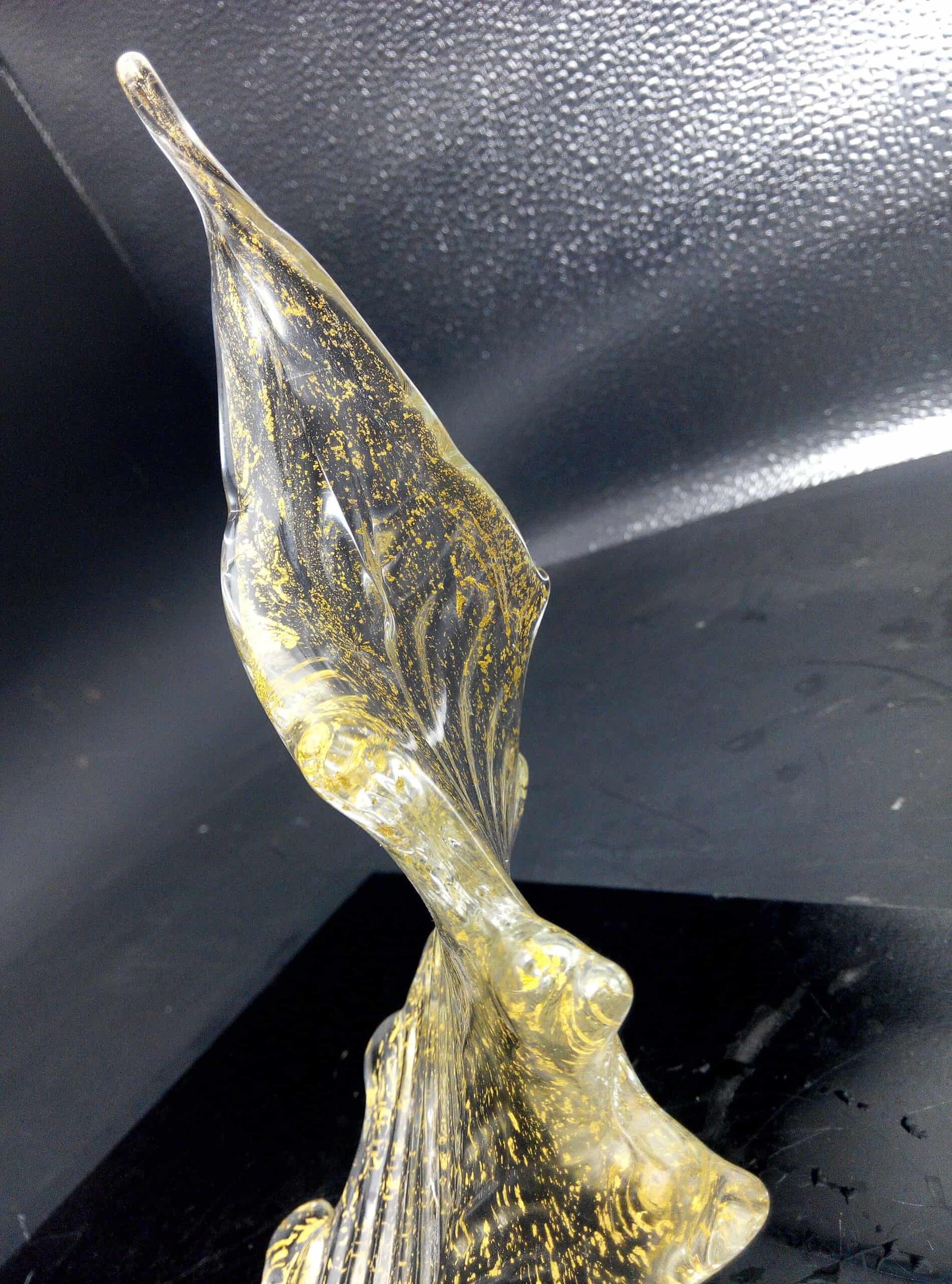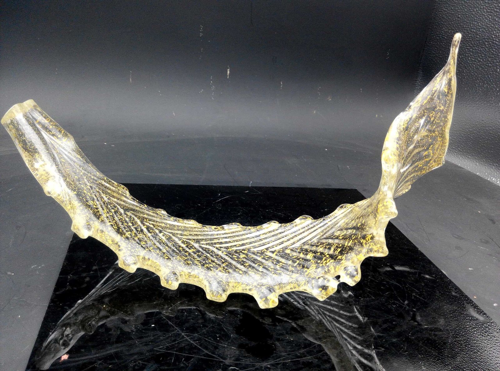 Crafted by skilled artisans using time-honored Murano glassblowing techniques, each jagged leaf is a unique creation that showcases the perfect marriage of glass and precious metal. The clear glass base is delicately adorned with genuine gold leaf, creating a mesmerizing interplay of transparency and opulence.